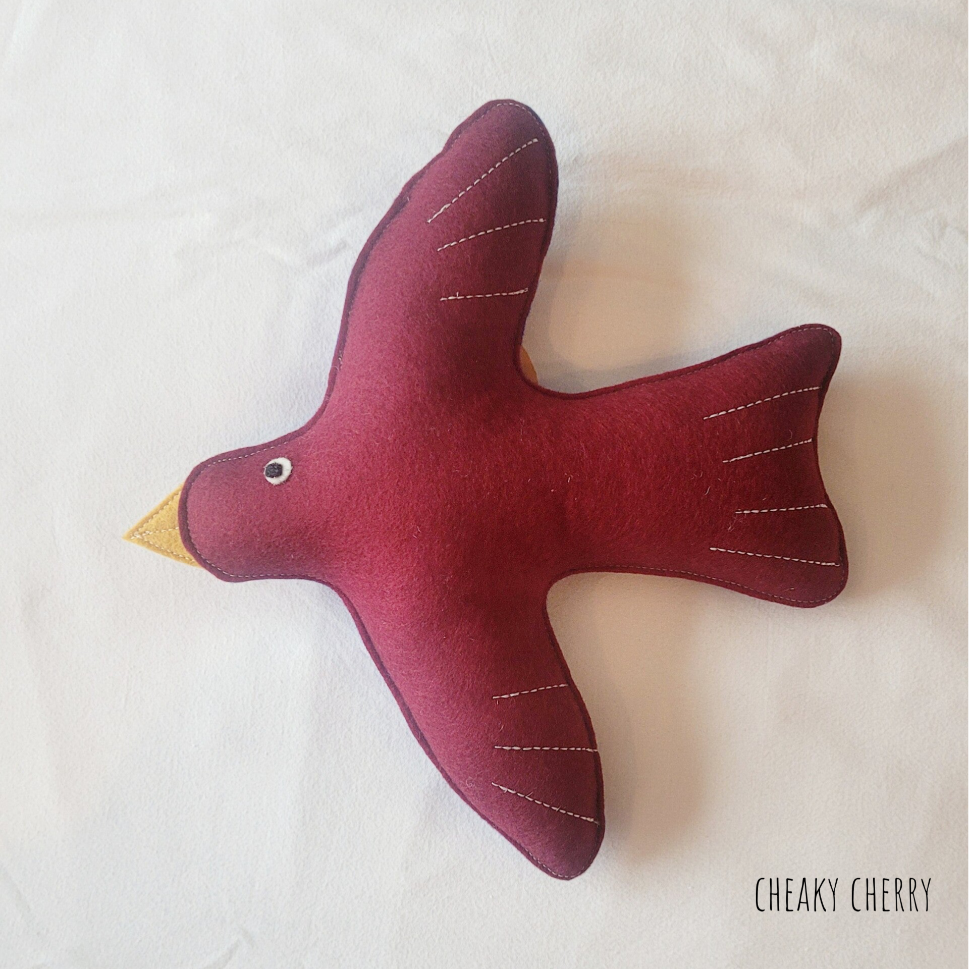 Deze vogel hang je onzichtbaar op met het elastiek aan de vleugel. En wil je de andere zijde aan de voorkant, dan verplaats je heel gemakkelijke het elastiek naar de andere kant.