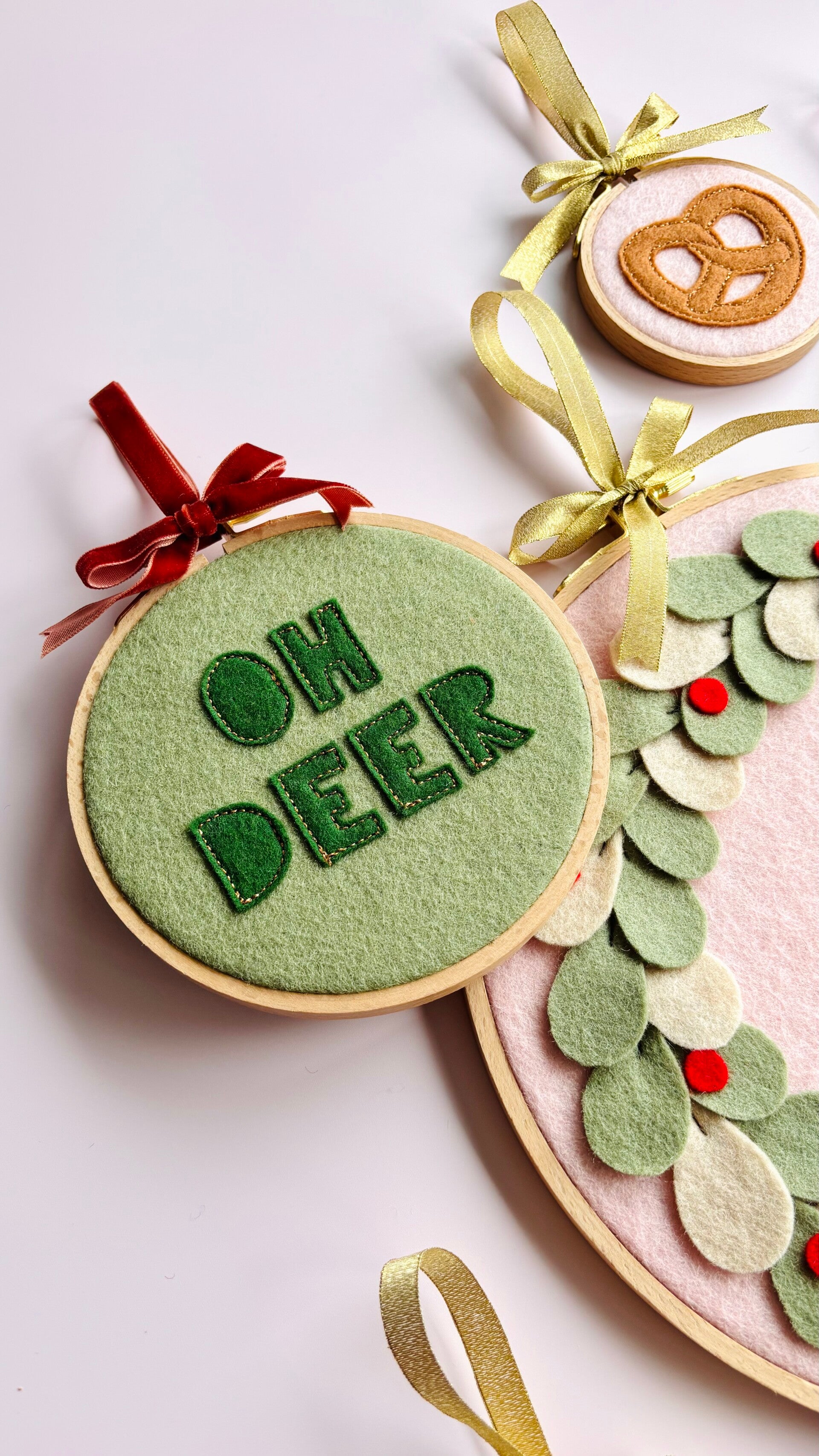 Deze kersthanger is afgewerkt met een koperkleurig glitterdraad.