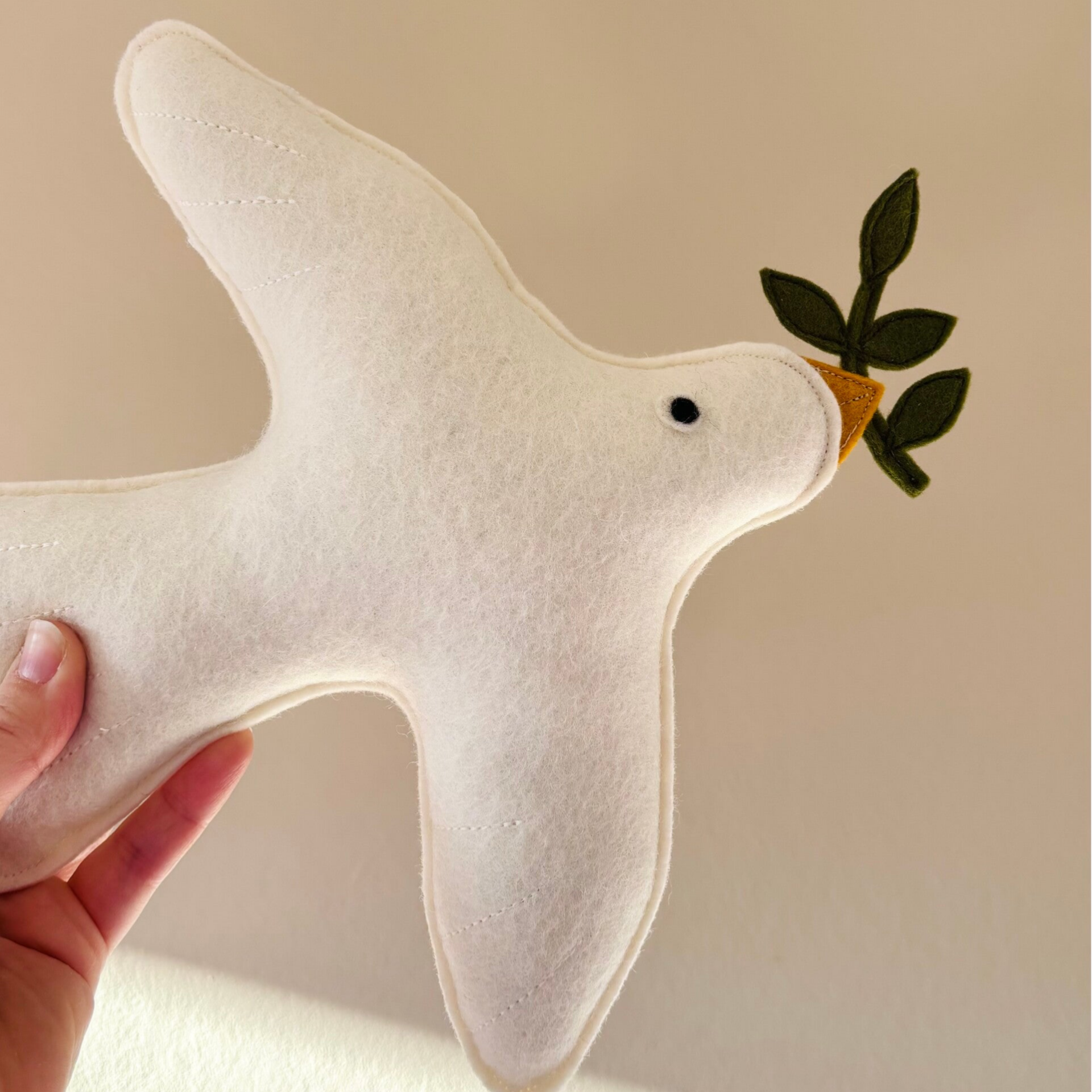 Muurkussen vogel 'Fly like a bird' in Sassy Snow met een olijftakje